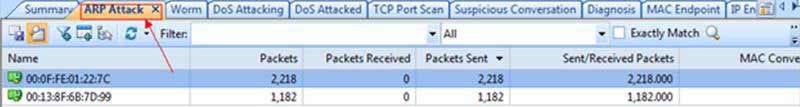 Colasoft Capsa tiene una gran ventaja: la capacidad de identificar y presentar ataques ARP sospechosos sin ningún procesamiento adicional, lo que facilita mucho la identificación, la mitigación y la resolución de problemas.