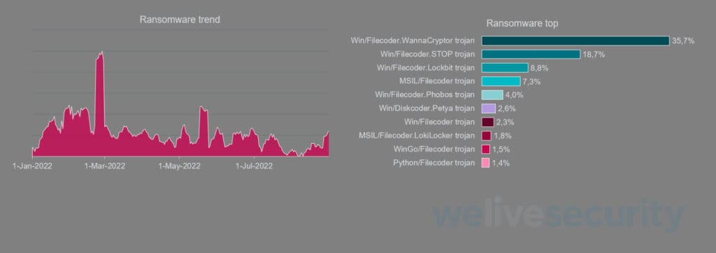 Y pese a los números decrecientes y el conflicto bélico, aun así las direcciones IP rusas continuaron siendo responsables de la mayor parte de los ataques al RDP. En el primer cuatrimestre de 2022 Rusia también fue el país más atacado por ransomware, con algunos de los ataques motivados política o ideológicamente por la guerra. Sin embargo, como se detalla en el ESET Threat Report para el segundo cuatrimestre de 2022, esta ola de hacktivismo ha disminuido en el segundo tercio del año y los operadores de ransomware dirigieron su atención hacia los Estados Unidos, China e Israel o Reino Unido. Sin embargo, es importante mencionar que esta realidad tuvo matices en cada región.