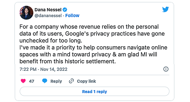 «Sin embargo, los requisitos de transparencia de este acuerdo garantizarán que Google no solo informe a los usuarios sobre cómo se utilizan sus datos de ubicación, sino también sobre cómo cambiar la configuración de su cuenta si desean deshabilitar la configuración de la cuenta relacionada con la ubicación, eliminar los datos recopilados y establecer límites de retención de datos».