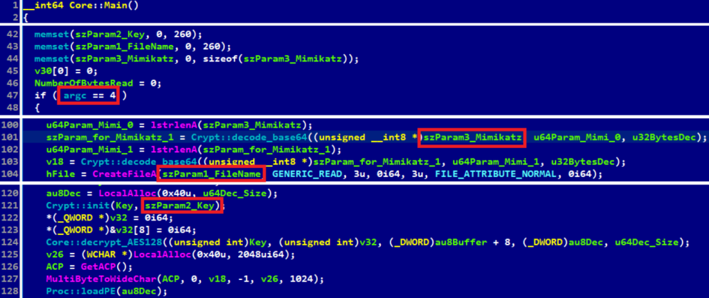 – Un argumento codificado doblemente en base64 para Mimikatz. Dicha cadena puede ser similar a "privilege::debug,lsadump::dcsync /domain: /all /csv".