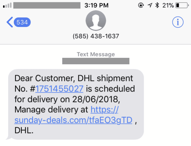 SMS con un enlace malicioso utilizado para atacar a un activista político. Fuente: Citizen Lab