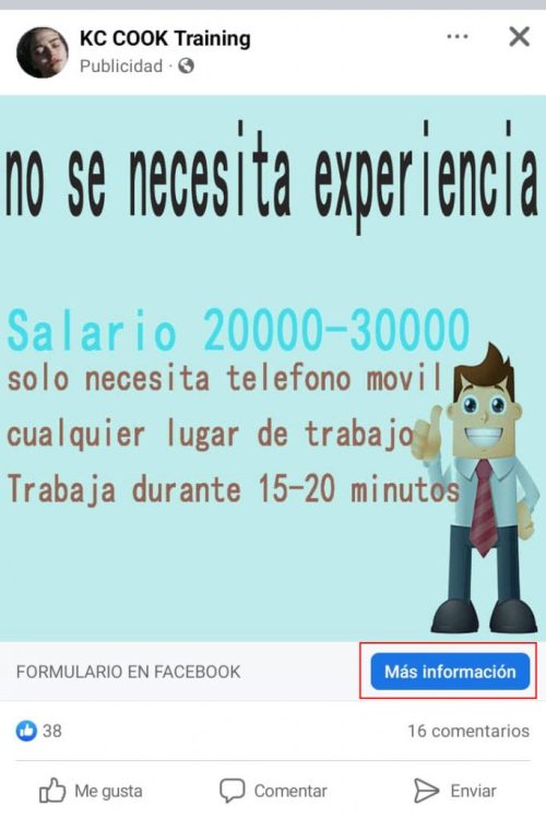 Según explicó, todo comenzó a través de un anuncio en Facebook en el que se ofrecía una oportunidad de trabajo sin necesidad de experiencia con ganancias de entre 20000 y 30000 pesos, equivalentes a unos 80 dólares, para el que solo se necesita el teléfono y dedicar entre 15 y 20 minutos diarios.