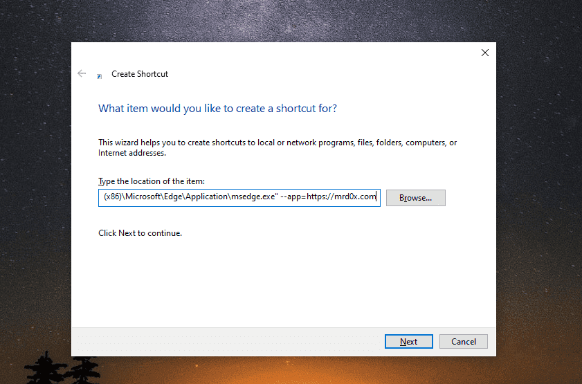 "C:\Program Files\Google\Chrome\Application\chrome.exe" --app=https://example.com# Microsoft Edge