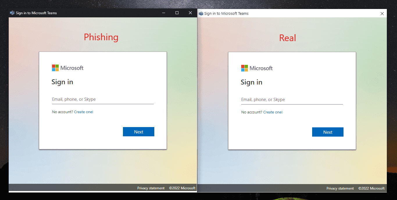 Según el caso de uso, un atacante también puede usar la técnica del navegador en el navegador para insertar una barra de direcciones falsa agregando el HTML/CSS requerido y creando clones de software, como, por ejemplo, Microsoft 365, Microsoft Teams , o incluso solicitudes de inicio de sesión de VPN.