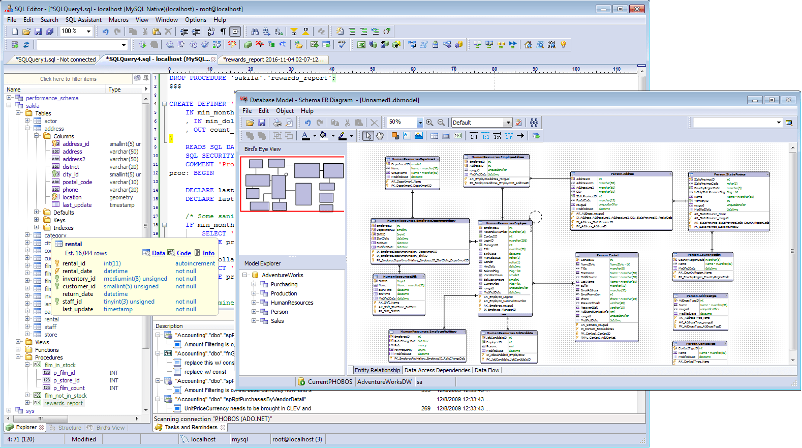 - Incluye formateadores de código y embellecedores; Validación de sintaxis SQL, vistas de estructura de código para una navegación rápida por el código y más …