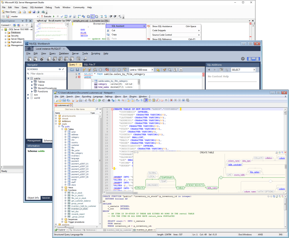 - SQL Server Management Studio 205/2008/2012/2014/2016/2017 / 18.x